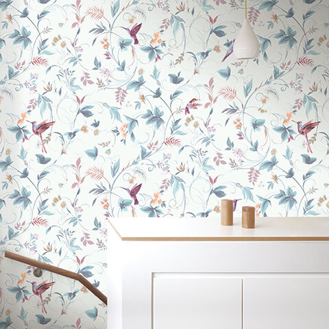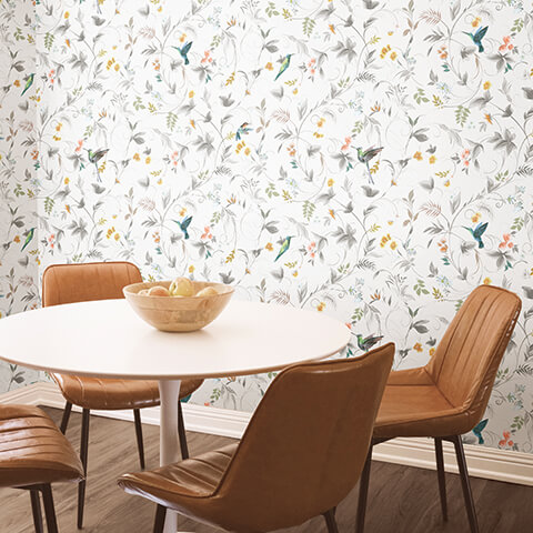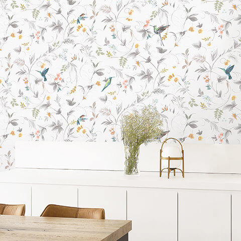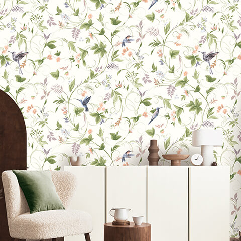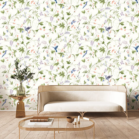 - Третий сет представляет собой ветви с хрупкими бутонами и листьями, среди которых парят райские колибри - все это передает изящность и изысканность вашему интерьеру. Мотив идеален для стиля прованс.