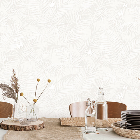 - Изящные бабочки, порхающие среди тропических листьев пальм, добавят гармонии и свежести в ваш дом.
